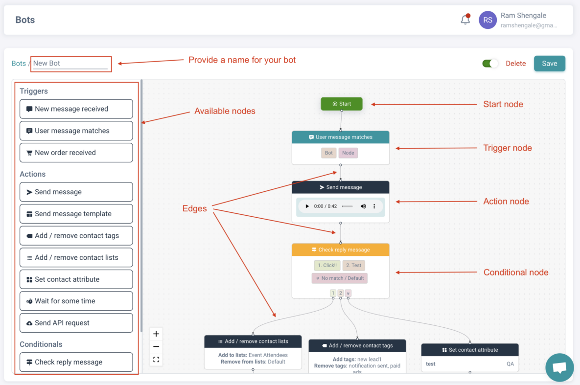 For example, you can set up auto-replies to instantly answer FAQs, create chatbots to guide customers through different product options or support requests, and build drip sequences to nurture and engage prospects over time.