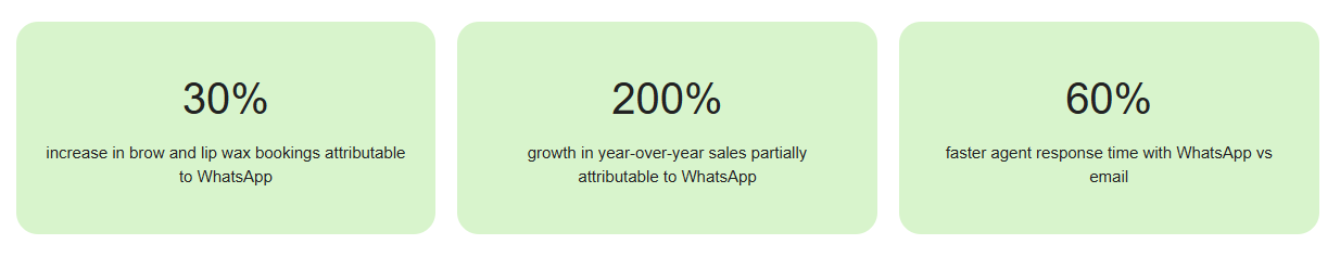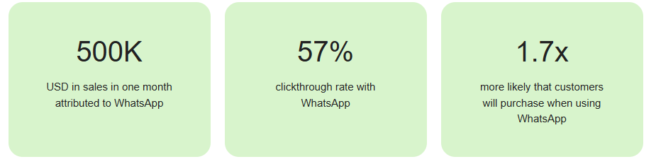 • Customers were 1.7× more likely to make a purchase via WhatsApp