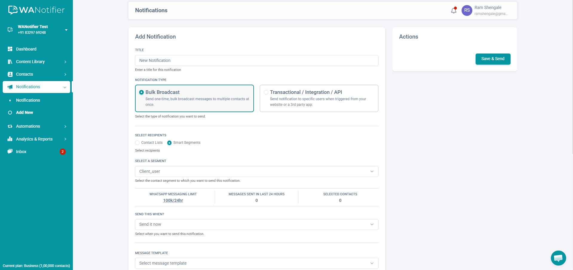 To access these features, businesses typically use a third-party platform, like WANotifier, which provides a complete WhatsApp marketing and automation solution and lets you create, manage, and send WhatsApp campaigns without writing a single line of code!